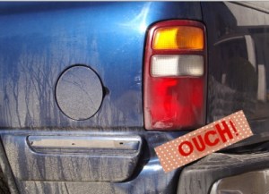 “Only my pride when I had to go back into the store and admit to the 13 furniture salespeople hovering around like vultures at the front desk that I hit a truck. We paged for the driver three times and I finally left a note under the windshield. Now I’m going to go call Erie Insurance and confess.”
